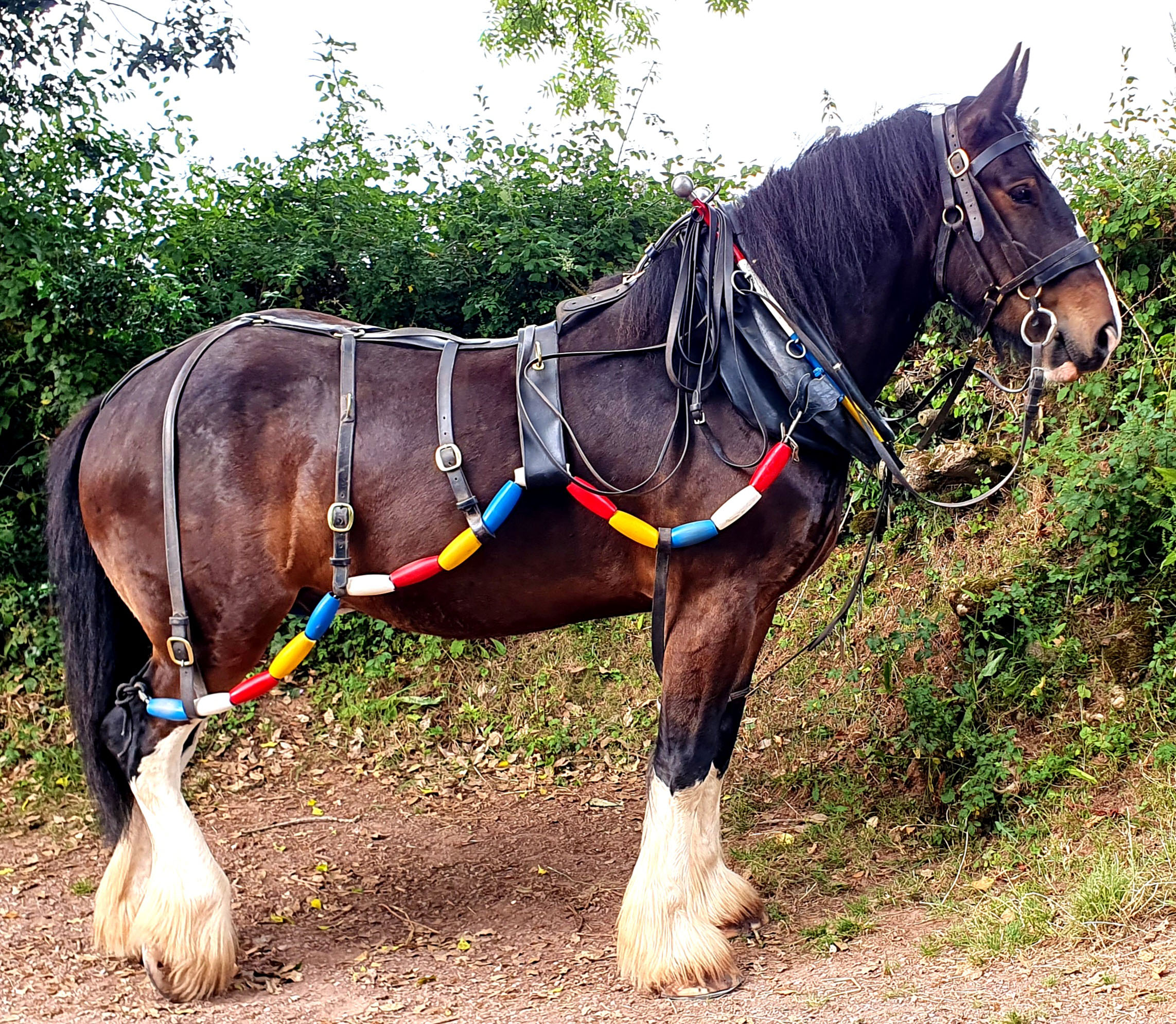 Hi, I'm Ross, I'm a Shire horse. We are reputed be the biggest breed of heavy horse and I stand 17.1 hs high and was born in June 2005. Unlike the traditional Shires that pulled the drays for the brewerys, I have a unique romany nose.